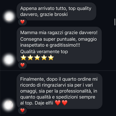 Offriamo vari metodi di spedizione in tutta Italia, Regno Unito, Europa, Nord America, Medio Oriente e Africa. Tutti gli ordini ricevuti prima del nostro orario di chiusura giornaliero saranno evasi e spediti entro le 13:00.
